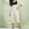 Ambas variaciones dejan el busto libre para que uses tu propio sujetador y mantienen la pierna hasta la rodilla, moldeando caderas, muslos y zona de la rodilla en un solo paso.